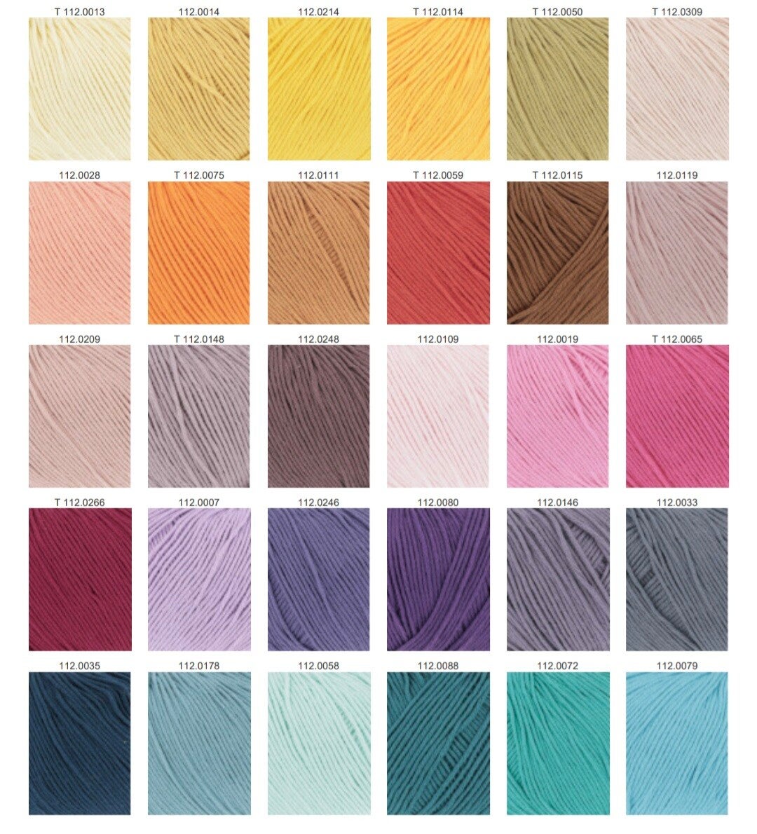 Het patroon is geschreven in maat S/M en maat L/XL. Voor beide maten krijg je 5 bollen Lang Yarns Baby Cotton in een kleur naar keuze. Op de laatste foto zie je alle mogelijke kleurnummers. Vergeet niet in de opmerkingen aan te geven welke kleur je graag wilt! Let op, op dit moment heb ik alleen de gele variant op voorraad (kleur 14).